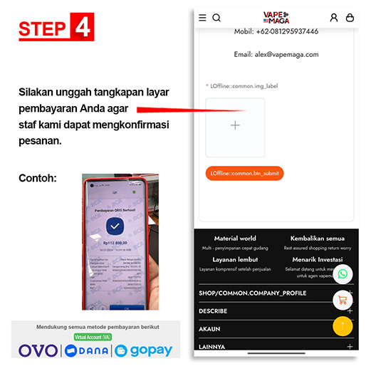 Setelah melakukan pembayaran dengan dompet digital untuk rokok elektrik, mohon unggah tangkapan layar pembayaran Anda, kemudian kirim pesanan.